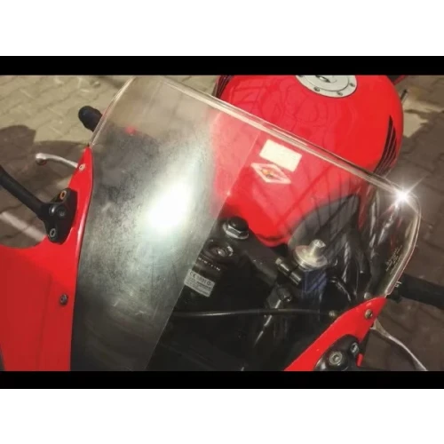 Lakkerte deler (f.eks. kåpe, tank osv.), hard gjennomsiktig plast (f.eks. frontlys, blinklys, vindskjerm).